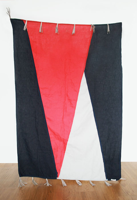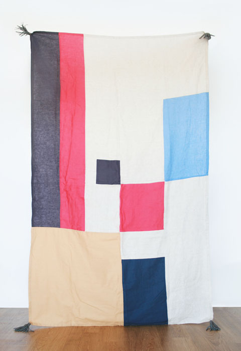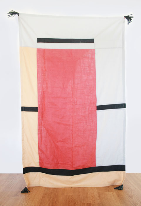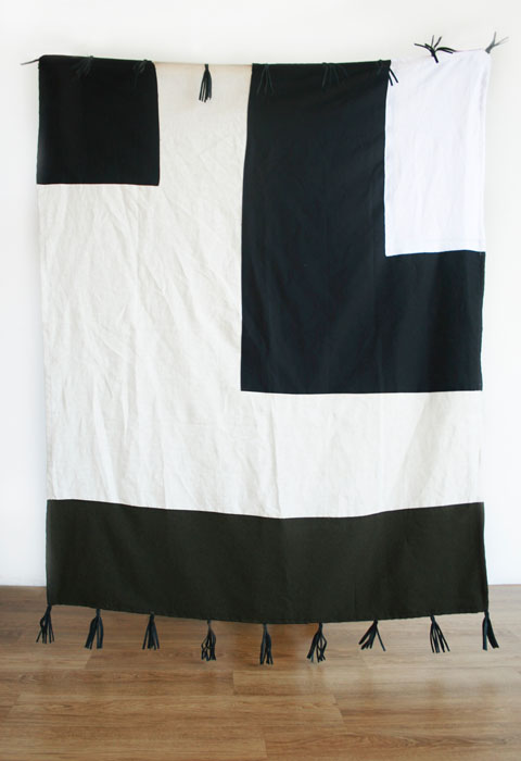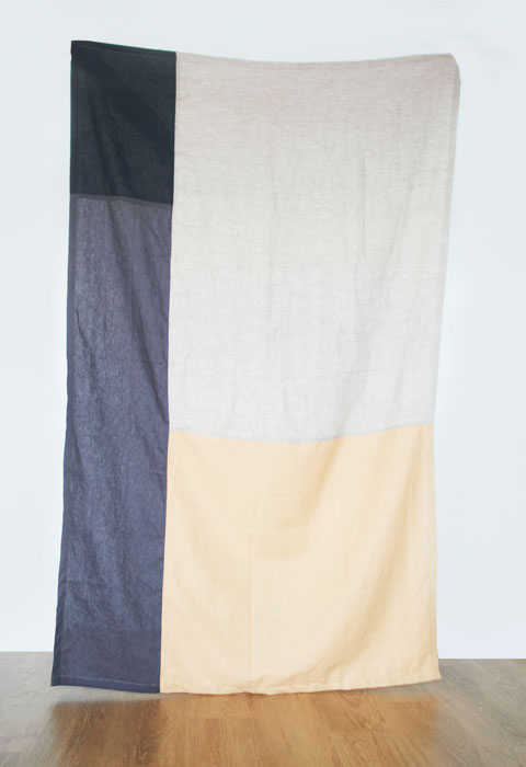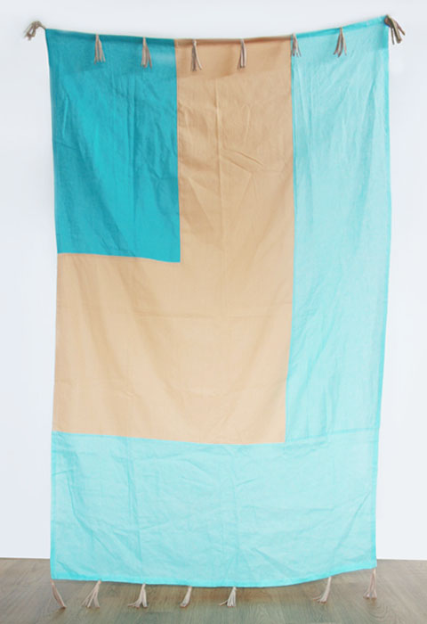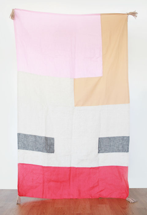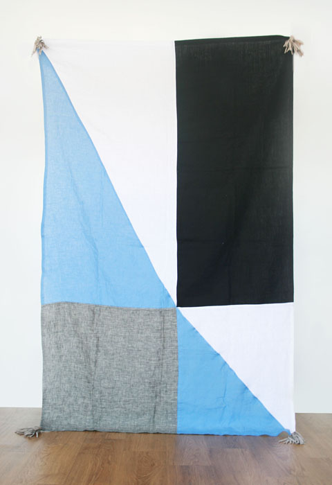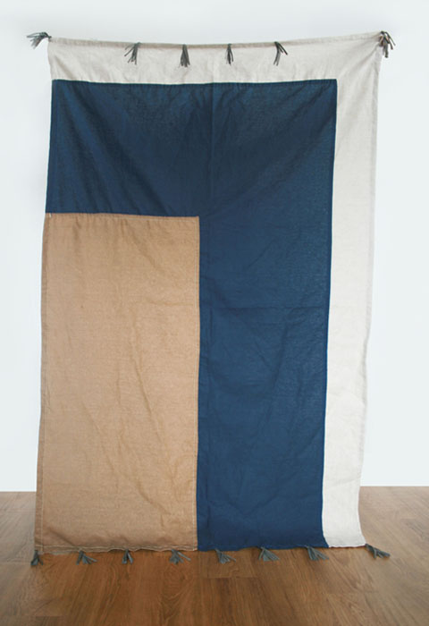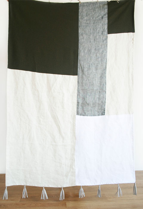 Materials: Neutral shades of linen in black, blue, beige, gray, pink rust, sand and white and cowhide leather tassels in black, cream, and gray.